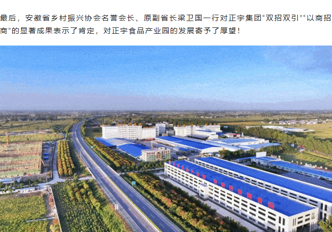 熱烈歡迎安徽省鄉(xiāng)村振興協(xié)會名譽會長原副省長梁衛(wèi)國一行到安徽正宇食品產(chǎn)業(yè)園考察
