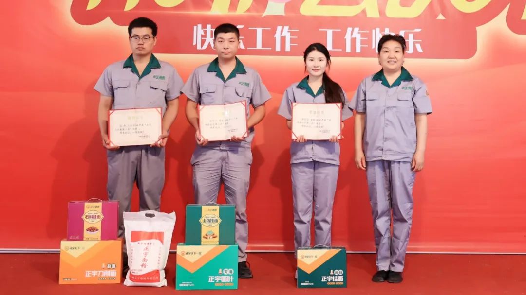 董事長曹云宇、總經(jīng)理曹廣領(lǐng)、李銳鋒副總、李成林副總分別為安徽正宇集團積分制管理(2024.01-2024.05)階段積分排名前21名正宇家人、部門平均分前三部門頒獎。