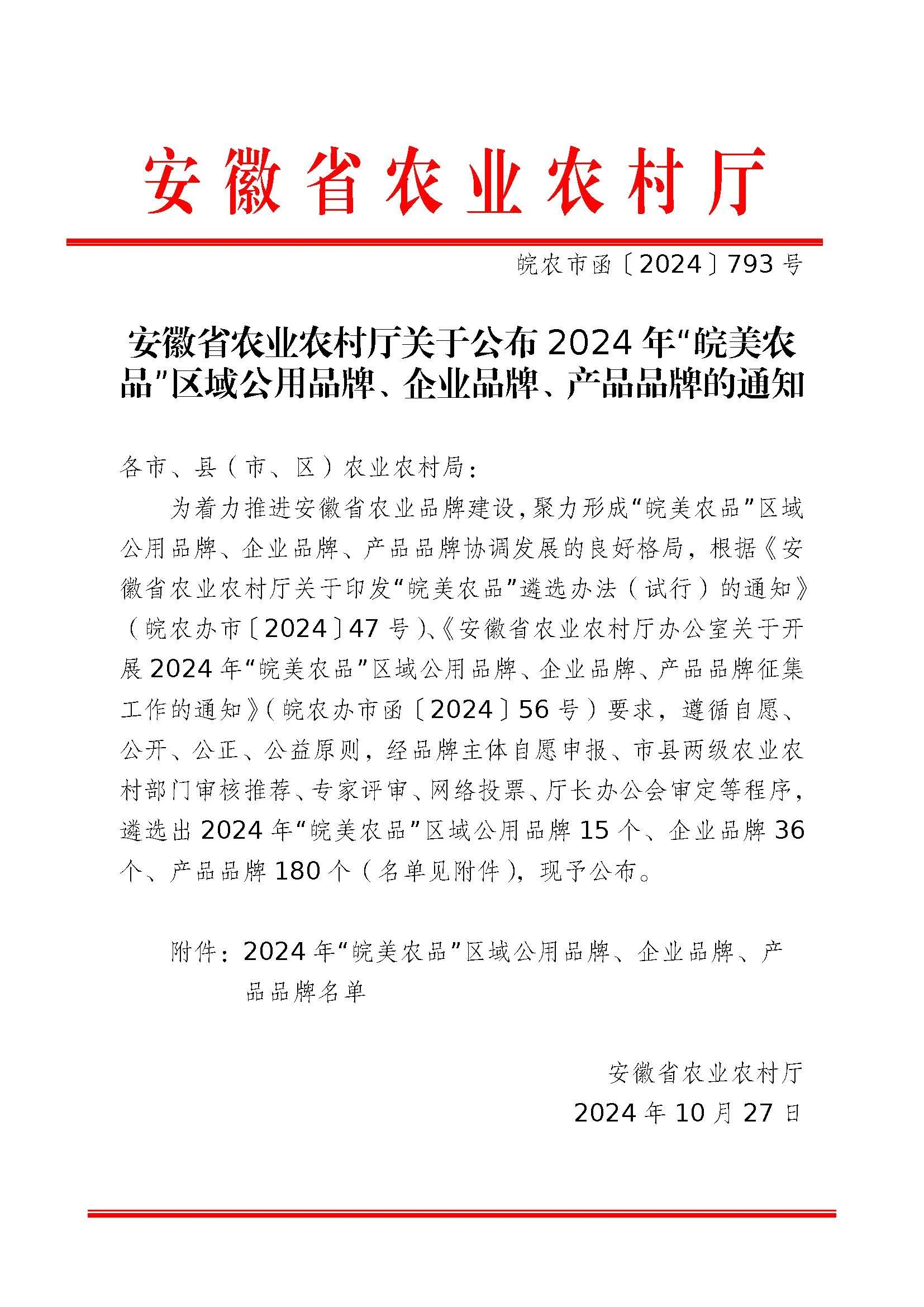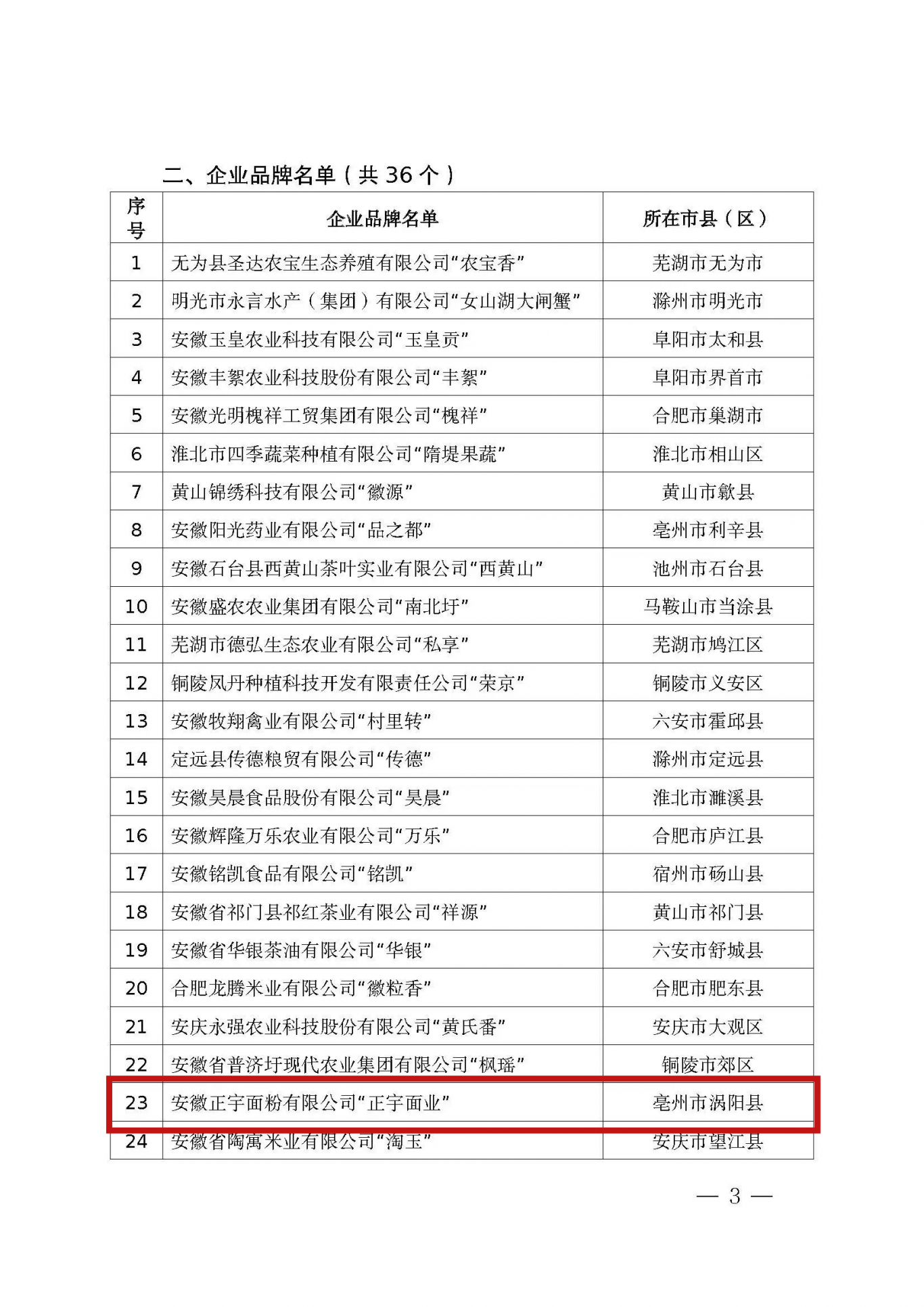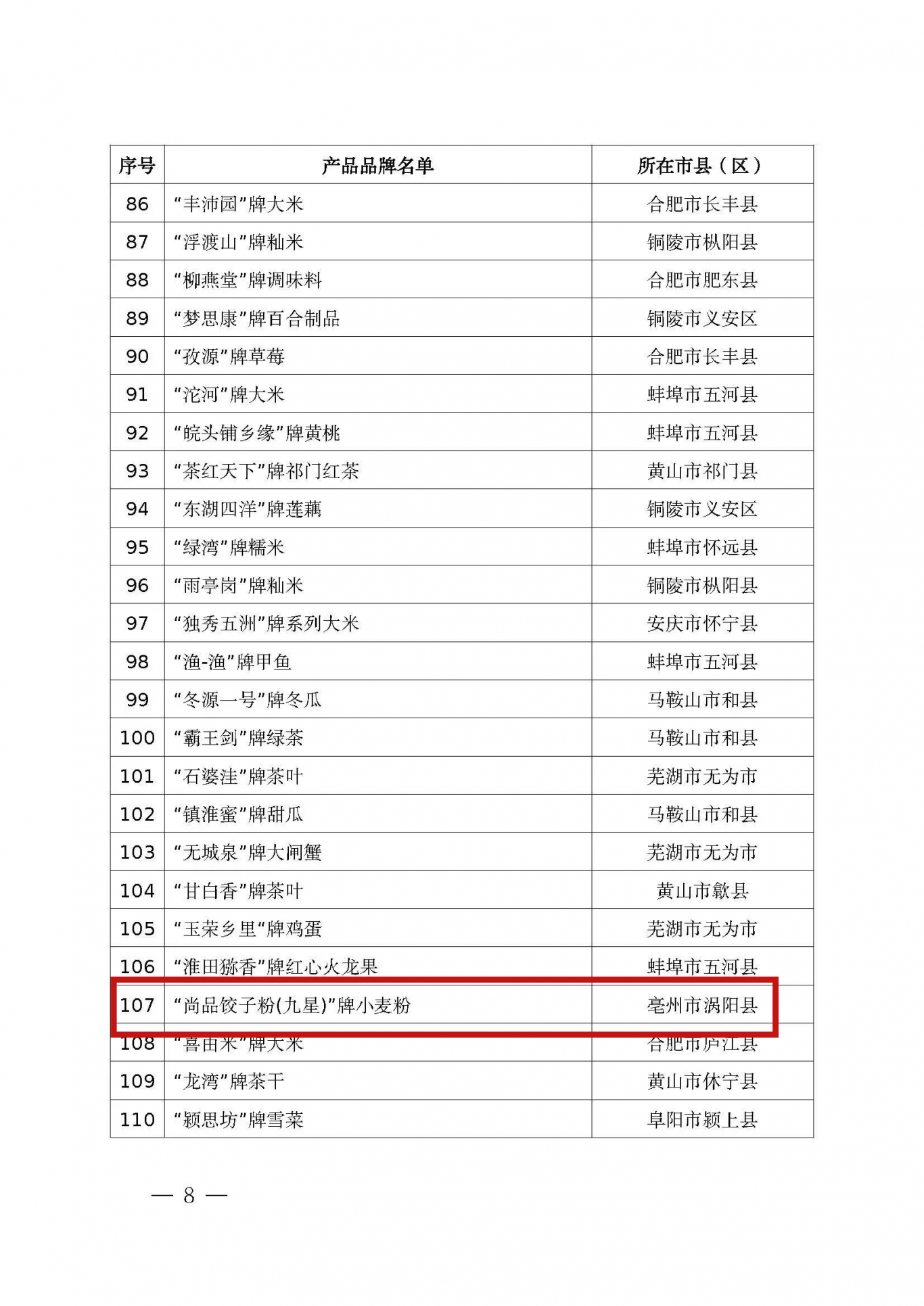 近日,安徽省農業農村廳網站發布2024年“皖美農品”區域公用品牌、企業品牌、產品品牌名單,正宇集團旗下“正宇面業”上榜2024年“皖美農品”企業品牌名單、“尚品餃子粉(九星)”上榜2024年“皖美農品”產品品牌名單。