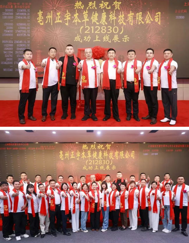 2025年6月18日,安徽正宇集團(tuán)旗下亳州正宇本草健康科技有限公司成功登陸上海股權(quán)托管交易中心,正式掛牌亮相!企業(yè)代碼:212830。這標(biāo)志著安徽正宇集團(tuán)在飛速發(fā)展的道路上又邁出了具有里程碑意義的關(guān)鍵一步!