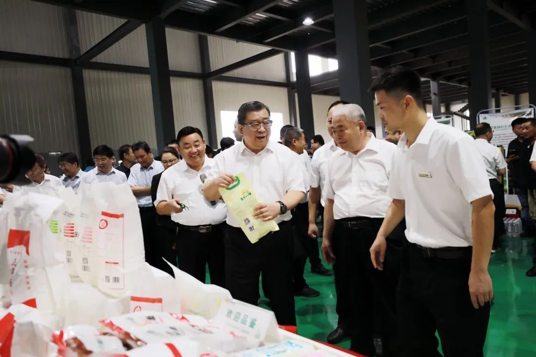 市委書記杜延安到安徽喜由季食品科技有限公司展區(qū)查看非油炸(方便面)產(chǎn)品