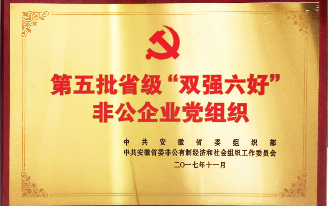 公司黨支部先后被授予全省“雙強六好”非公企業黨組織、“首批全省非公企業和社會組織黨建工作示范點”“亳州市五星基層黨組織”“亳州市先進黨組織”等榮譽。
